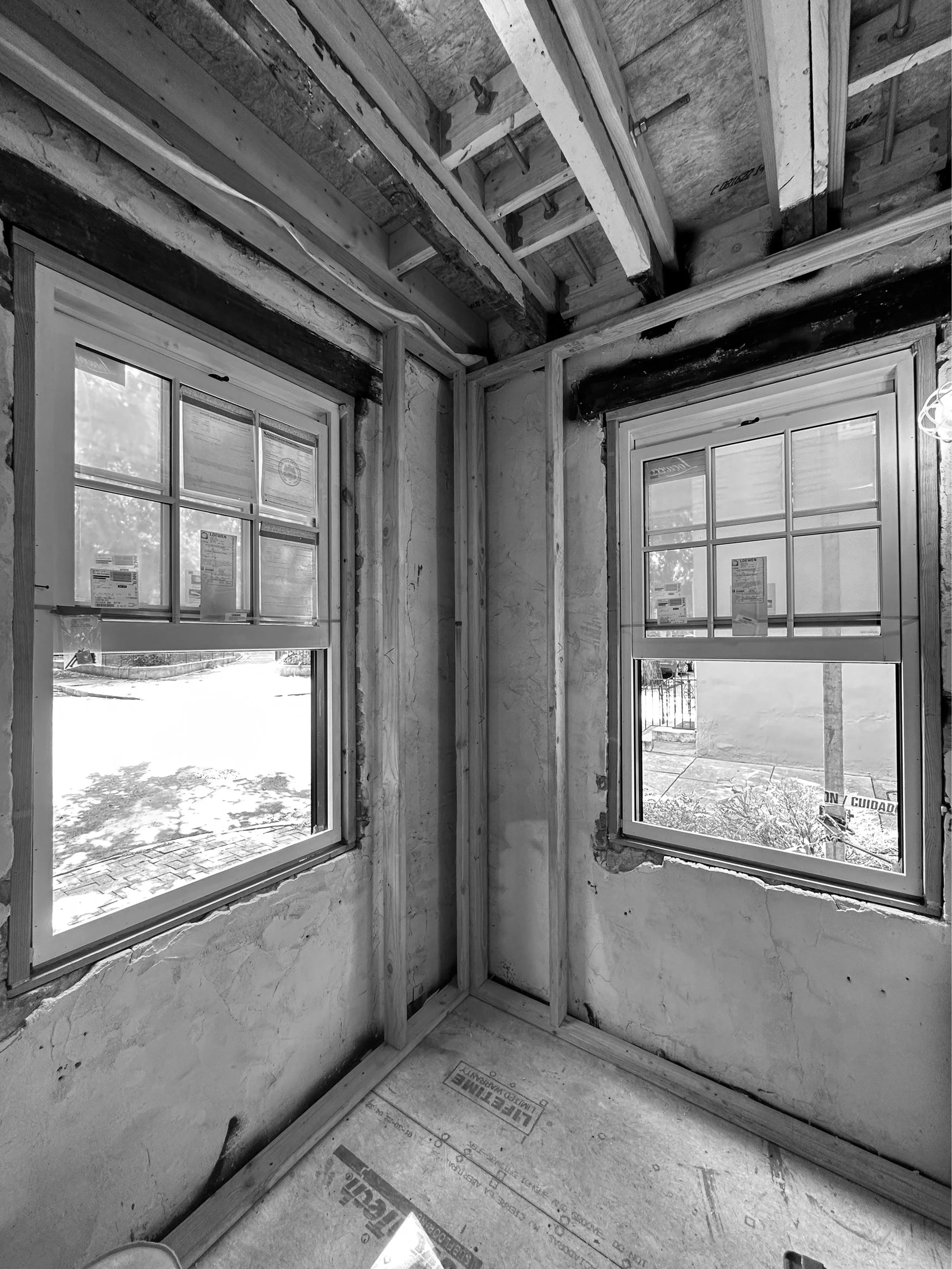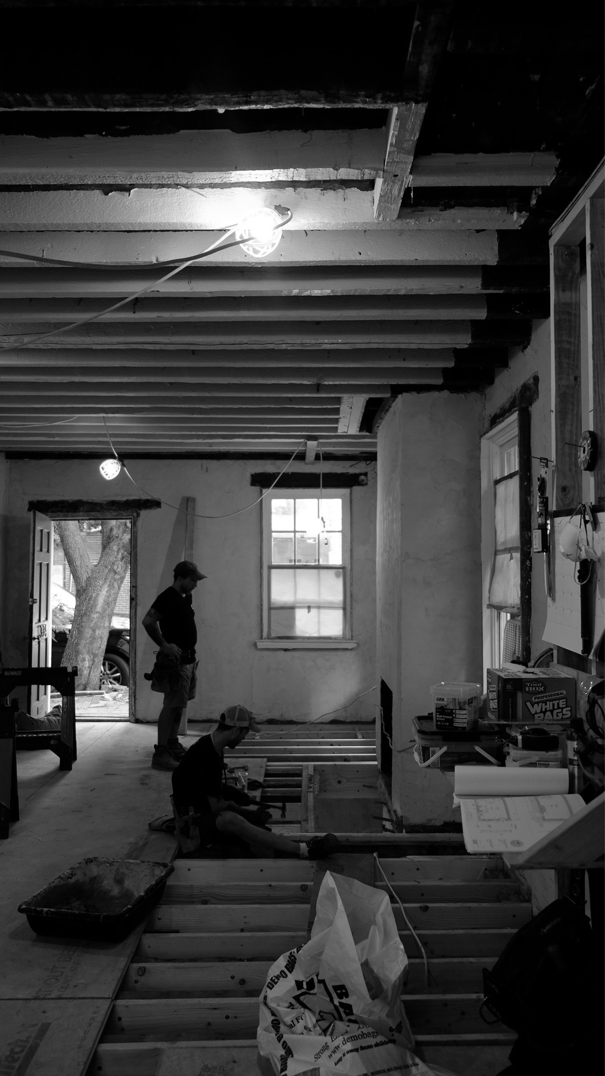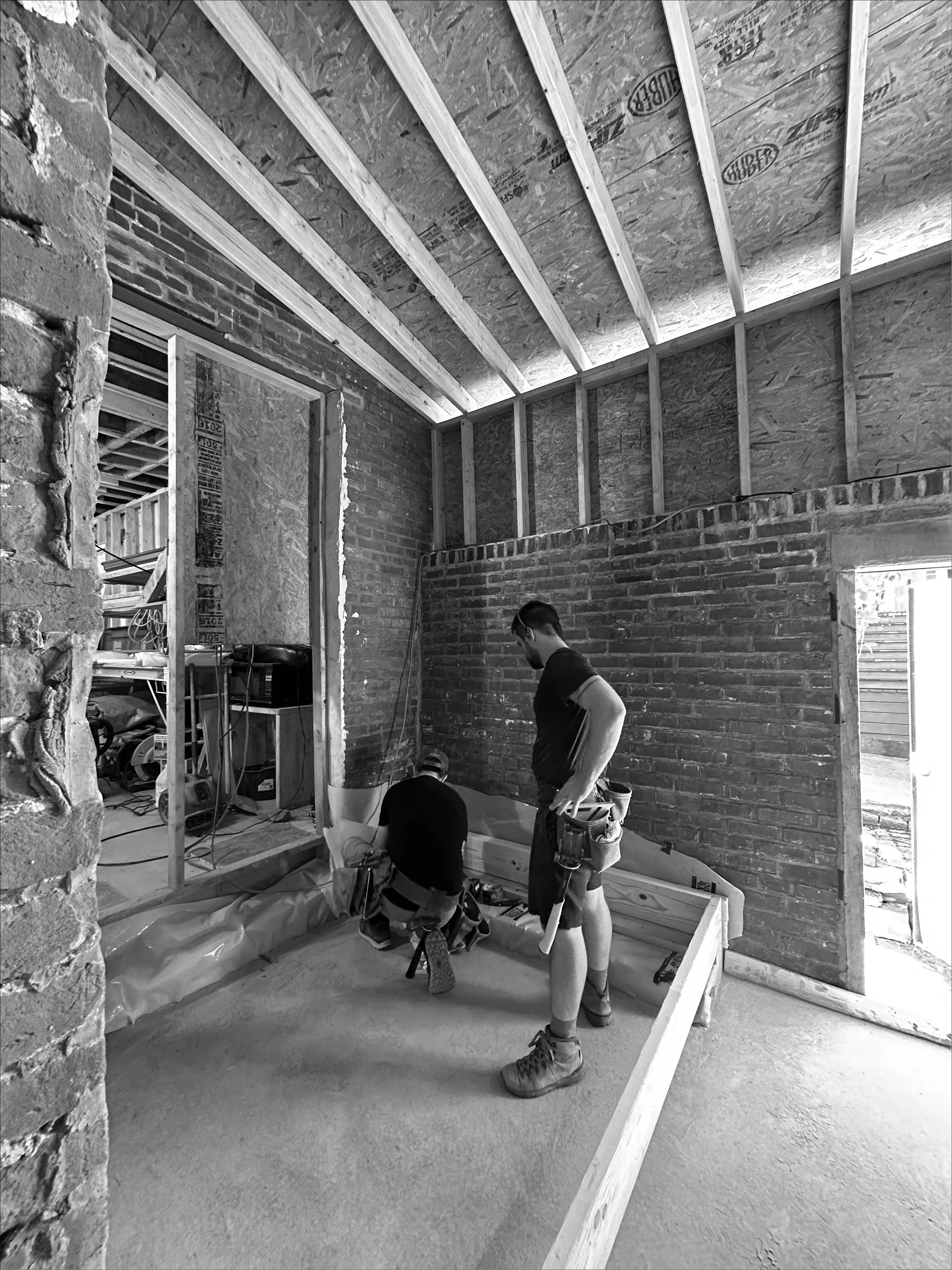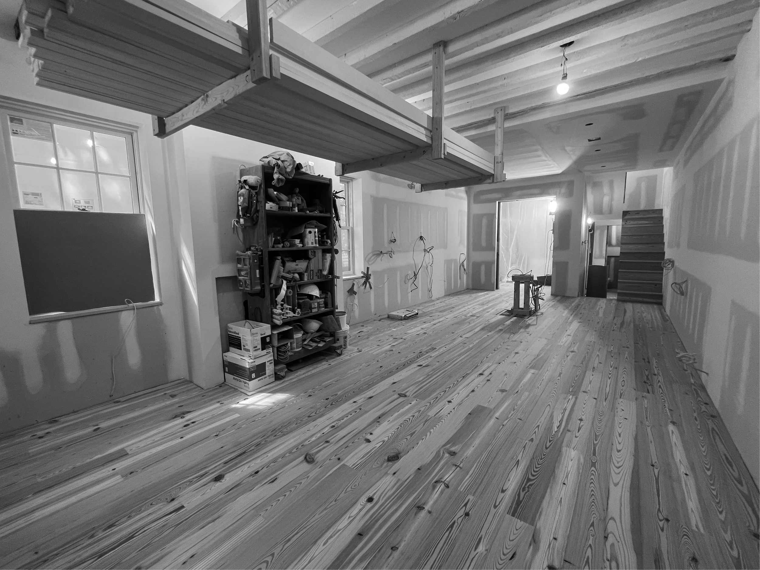Tucked on a cobblestone corner in historic Fitler Square, this early-1800s brick town house was completely rebuilt behind its original walls to create a bright, modern home for a young family. A new steel-and-glass kitchen solarium and rear addition bring light deep into the narrow 15-foot-wide footprint while making room for a hardworking mudroom and powder room at the alley entrance. Throughout the house, white oak built-ins, reclaimed heart pine floors, and exposed brick honor the original character—maximizing storage and circulation on every level while preserving the integrity of the historic shell. Up top, a vaulted primary suite with skylights, custom millwork, a generous bath, and steam shower turns the once-cramped third floor into a calm retreat above the city.