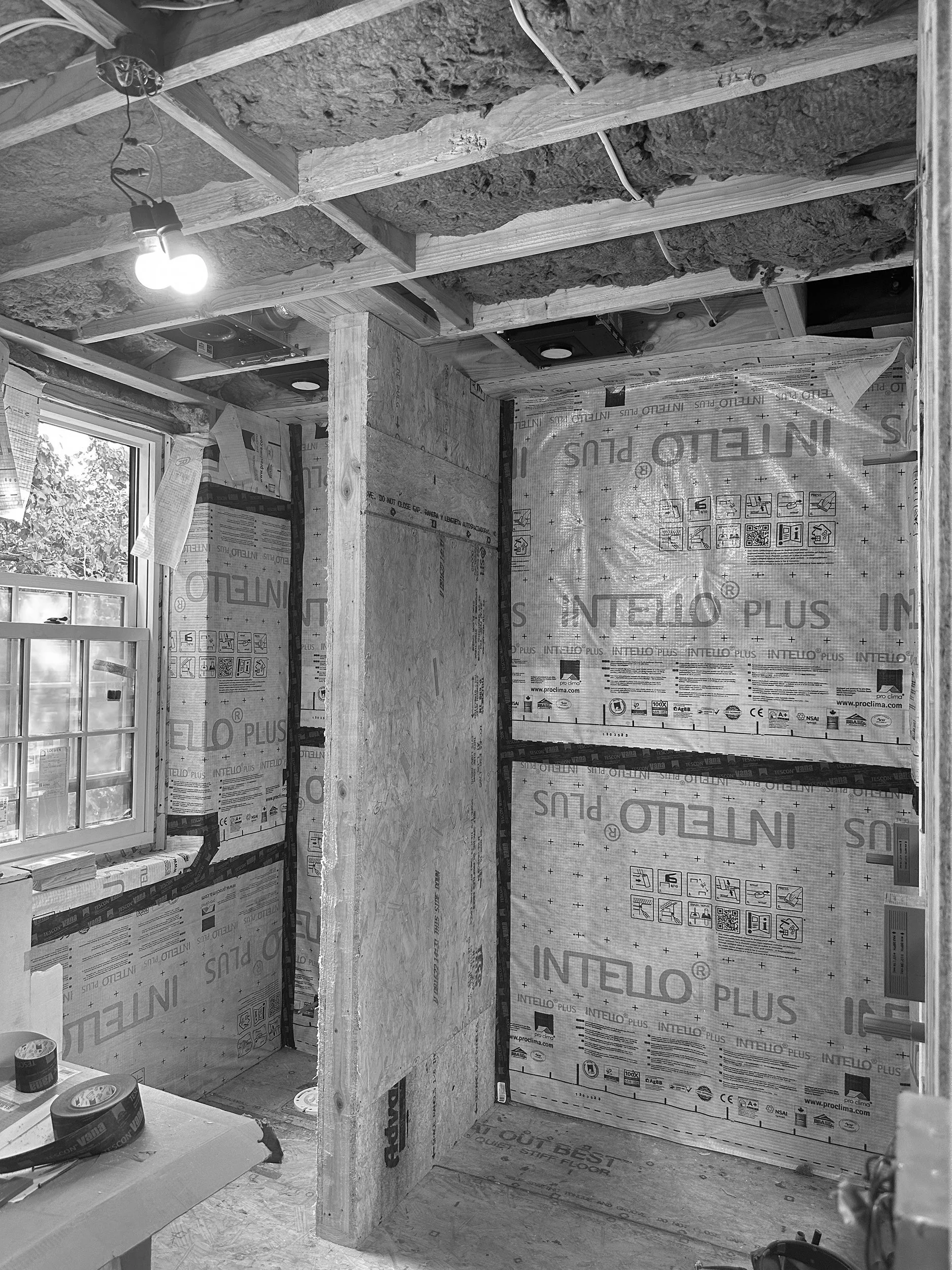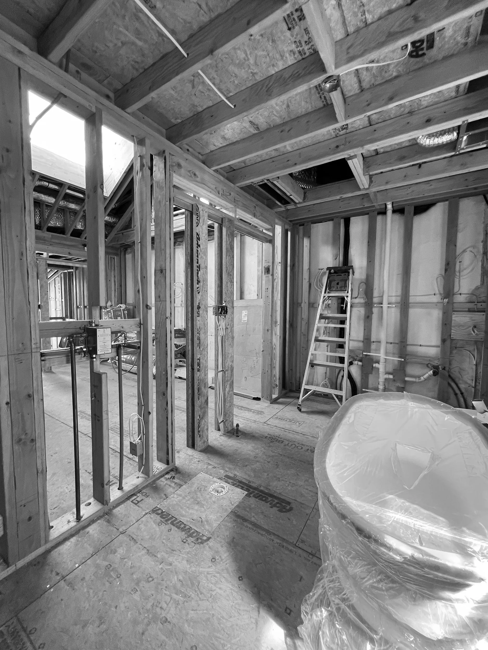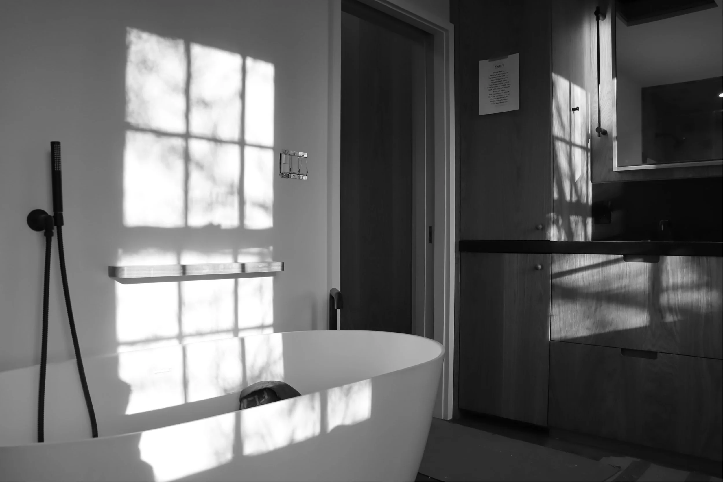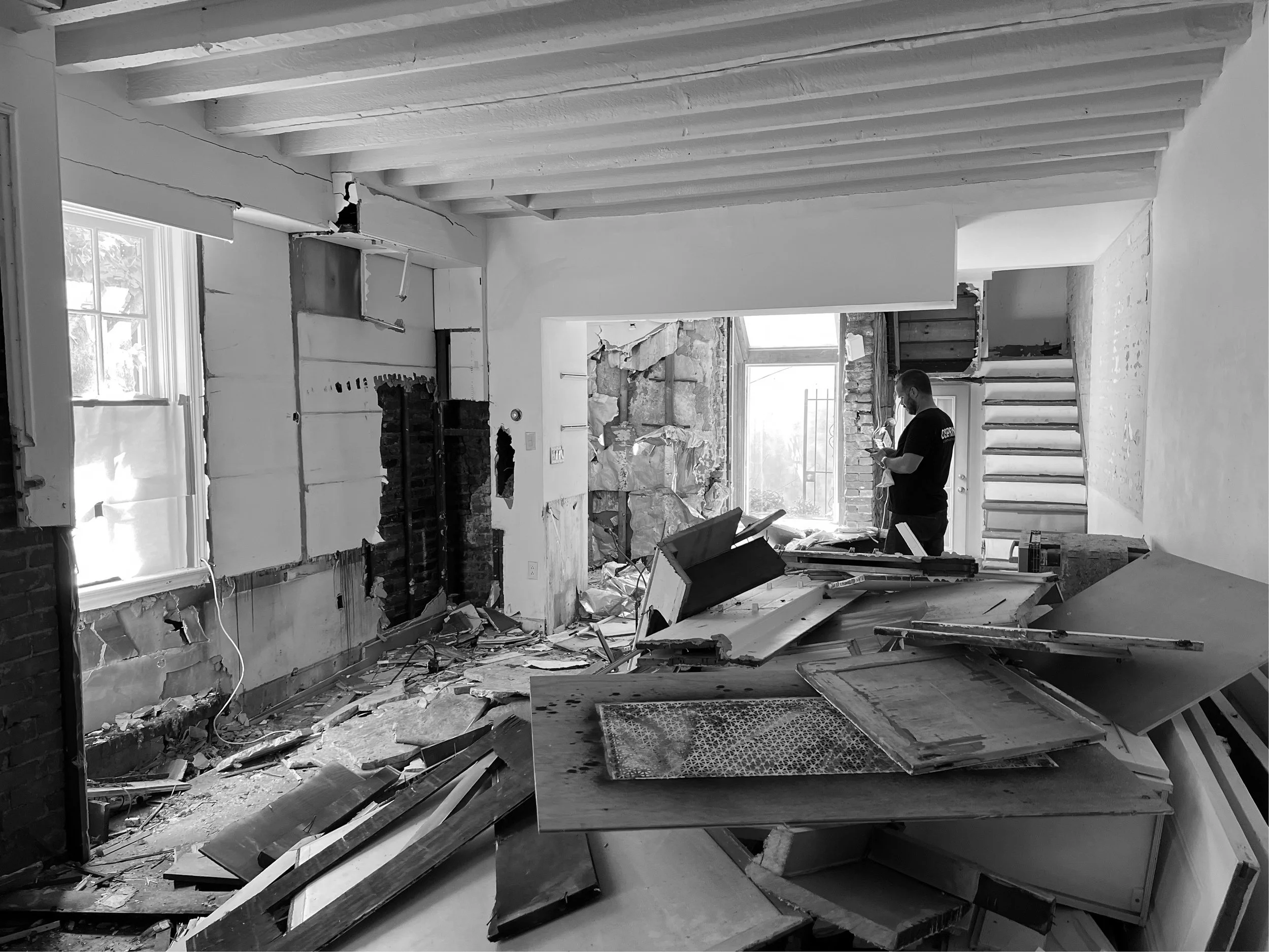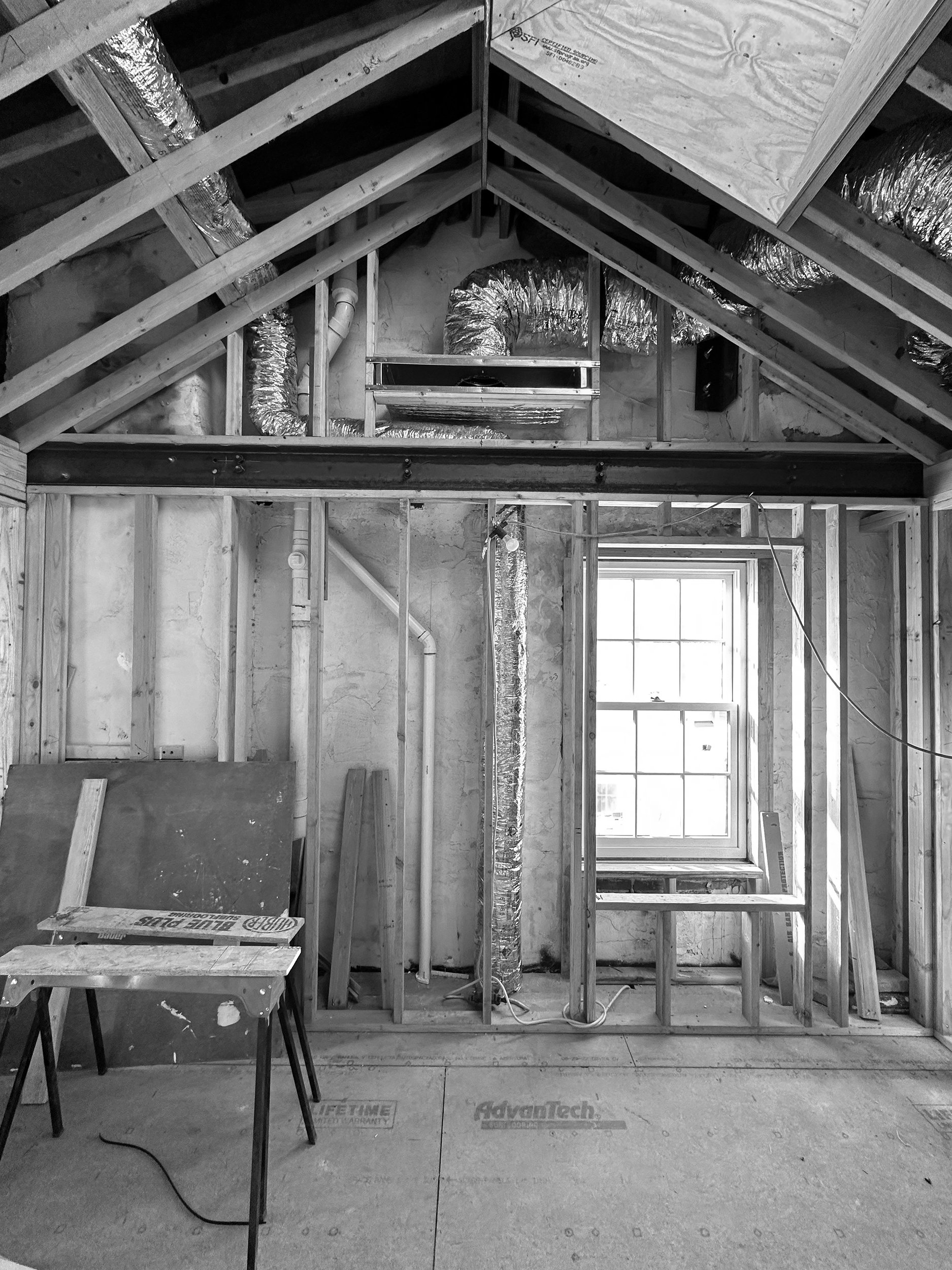 Tucked on a cobblestone corner in historic Fitler Square, this early-1800s brick town house was completely rebuilt behind its original walls to create a bright, modern home for a young family. A new steel-and-glass kitchen solarium and rear addition bring light deep into the narrow 15-foot-wide footprint while making room for a hardworking mudroom and powder room at the alley entrance. Throughout the house, white oak built-ins, reclaimed heart pine floors, and exposed brick honor the original character—maximizing storage and circulation on every level while preserving the integrity of the historic shell. Up top, a vaulted primary suite with skylights, custom millwork, a generous bath, and steam shower turns the once-cramped third floor into a calm retreat above the city.